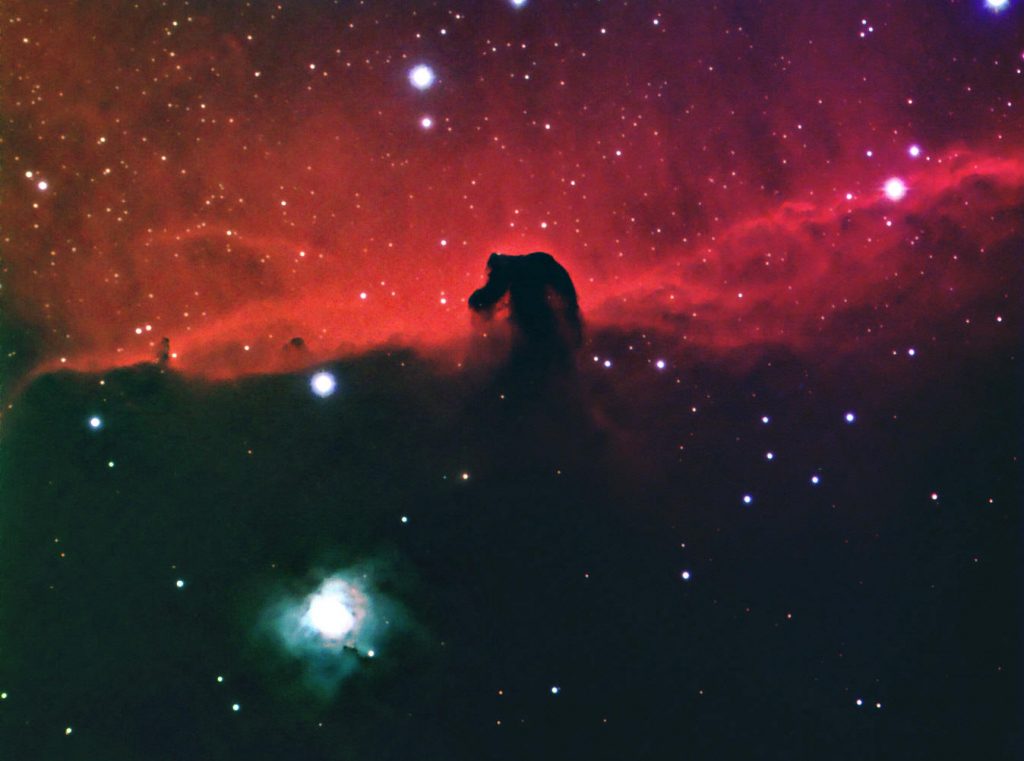 Der IC 434 ist ein Emissionsnebel im Sternbild Orion, der auch als Pferdekopfnebel bekannt ist. Er ist eine dunkle Staubwolke, die vor einem hellen Hintergrund aus leuchtendem Wasserstoffgas liegt. Die charakteristische Form erinnert an einen Pferdekopf, was ihm seinen Namen gibt. Der Nebel ist etwa 1.500 Lichtjahre von der Erde entfernt und ein beliebtes Beobachtungsobjekt für Amateurastronomen. Er ist Teil des größeren Orion-Molekülwolkenkomplexes, einer Region intensiver Sternentstehung.