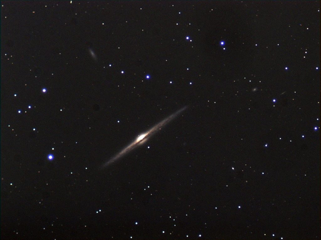 NGC 4565, auch bekannt als die Nadelgalaxie, ist eine spektakuläre Balkenspiralgalaxie, die sich im Sternbild Haar der Berenike befindet. Sie ist etwa 30 bis 50 Millionen Lichtjahre von der Erde entfernt und zeichnet sich durch ihre schmale, kantenblickartige Erscheinung aus, die ihr das Aussehen einer Nadel verleiht. Aufgrund ihrer Größe und Helligkeit ist NGC 4565 ein beliebtes Beobachtungsobjekt für Amateurastronomen. Die Galaxie besitzt eine markante Staubscheibe und einen hellen galaktischen Kern, was sie zu einem hervorragenden Beispiel für die Struktur von Spiralgalaxien macht. NGC 4565 bietet wertvolle Einblicke in die Dynamik und Entwicklung von Galaxien in unserer kosmischen Nachbarschaft.