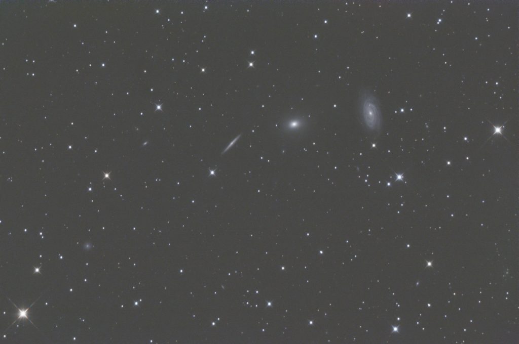 NGC 5985 ist eine Balkenspiralgalaxie im Sternbild Drache. Sie befindet sich etwa 160 Millionen Lichtjahre von der Erde entfernt und gehört zur Gruppe der Galaxien, die als NGC 5981-Gruppe bekannt sind. NGC 5985 zeichnet sich durch ihren ausgeprägten Balken und die gut sichtbaren Spiralarmen aus, die reich an jungen Sternen und Sternentstehungsgebieten sind. Aufgrund ihrer Entfernung und Struktur wird sie häufig in astronomischen Studien verwendet, um die Dynamik von Spiralgalaxien zu untersuchen.