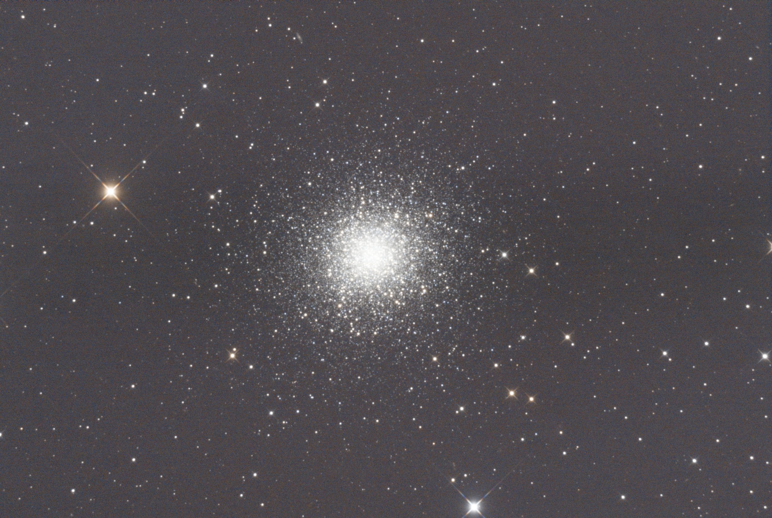 Messier 13, auch bekannt als der Herkuleshaufen, ist ein Kugelsternhaufen im Sternbild Herkules. Er wurde 1714 von dem Astronomen Edmond Halley entdeckt und später vom französischen Astronomen Charles Messier in seinen Katalog aufgenommen. M13 ist einer der hellsten und bekanntesten Kugelsternhaufen am nördlichen Nachthimmel und besteht aus mehreren hunderttausend alten Sternen, die dicht zusammengeballt sind.