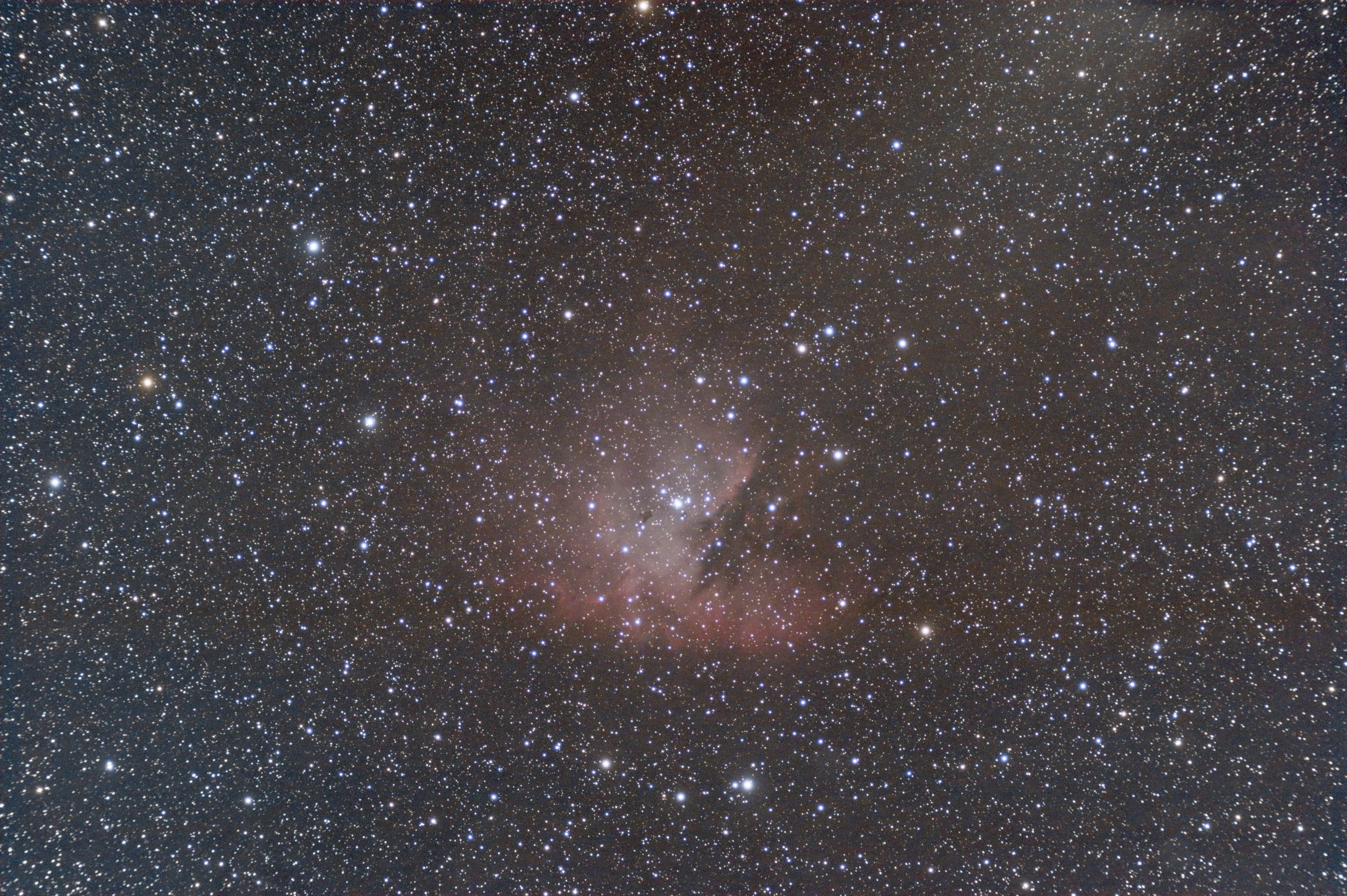 SH2-155 ist ein heller Emissionsnebel im Sternbild Schütze, der oft als Teil eines größeren Sternentstehungsgebiets betrachtet wird. Er besteht aus ionisiertem Wasserstoff, der durch die intensive Strahlung junger, heißer Sterne zum Leuchten angeregt wird. SH2-155 zeigt eindrucksvolle Strukturen aus Gas und Staub, die durch die Wechselwirkung mit den Sternwinden und der Strahlung geformt werden. Dieses faszinierende Objekt ist ein Beispiel für die dynamischen Prozesse in unserer Milchstraße, bei denen neue Sterne geboren werden und das interstellare Medium beeinflussen. Das Bild von SH2-155 vermittelt die Schönheit und Komplexität solcher kosmischen Gebiete.