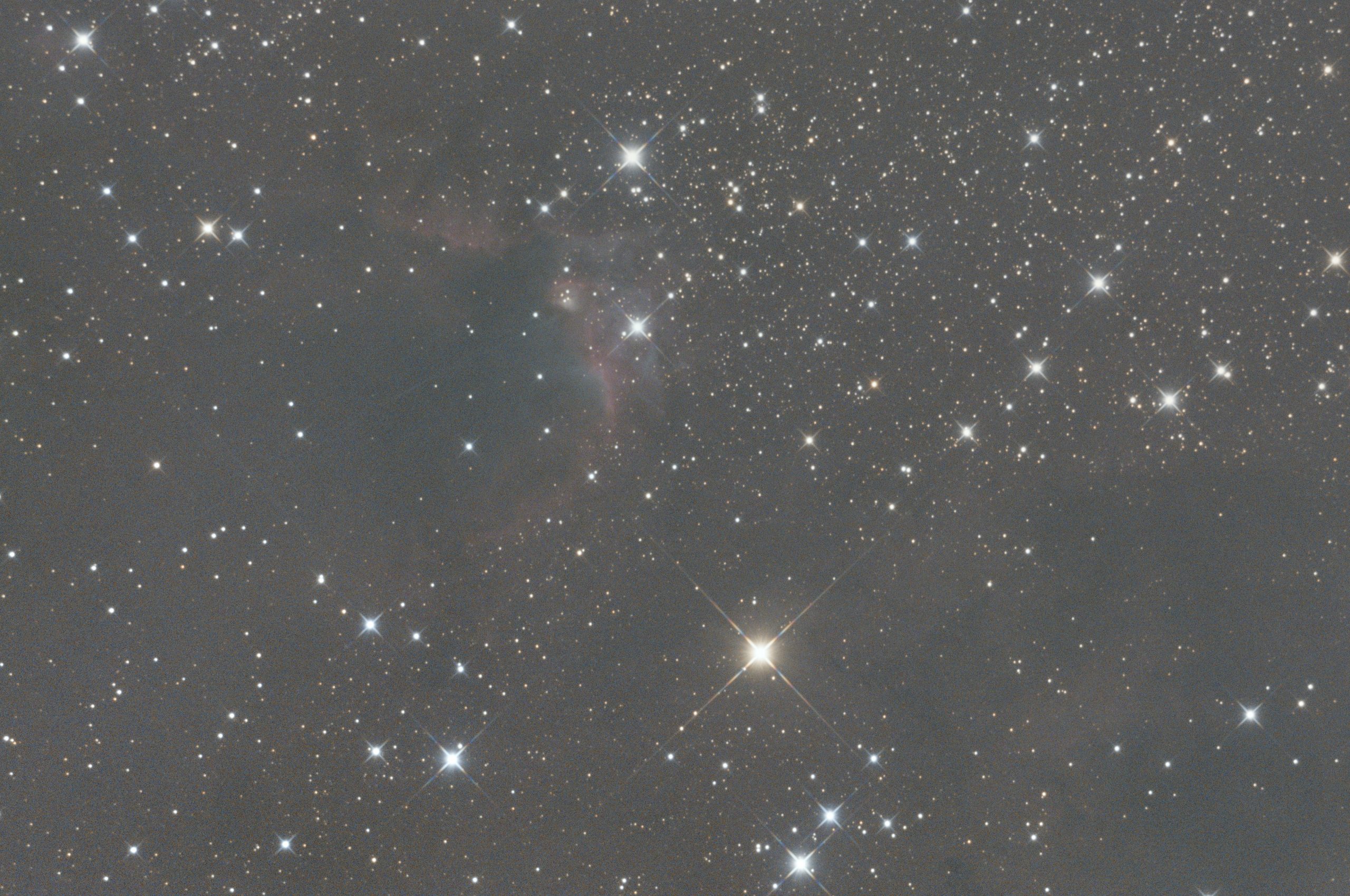 Der IC 434 ist ein Emissionsnebel im Sternbild Orion, der auch als Pferdekopfnebel bekannt ist. Er ist eine dunkle Staubwolke, die vor einem hellen Hintergrund aus leuchtendem Wasserstoffgas liegt. Die charakteristische Form erinnert an einen Pferdekopf, was ihm seinen Namen gibt. Der Nebel ist etwa 1.500 Lichtjahre von der Erde entfernt und ein beliebtes Beobachtungsobjekt für Amateurastronomen. Er ist Teil des größeren Orion-Molekülwolkenkomplexes, einer Region intensiver Sternentstehung.